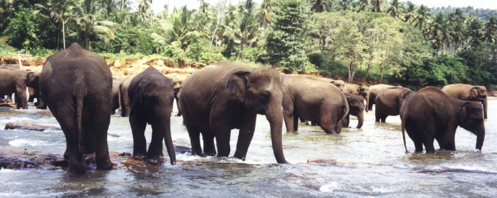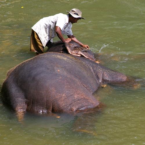 Twee keer per dag om 10.00 uur en 14.00 uur gaan de olifanten in bad in de rivier, direct daarna is het voedertijd en beide wilt men niet missen.