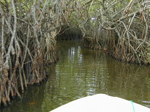 Men kan er vele dieren zien zoals apen, reptielen en vogels, terwijl men vaart langs en door de tropische mangroven bomen.