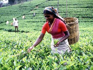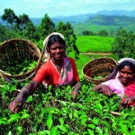 Naarmate men hoger klimt, veranderen rijstvelden in uitgestrekte theeplantages. Vrouwen in kleurige saris zijn hierop aan het werk.